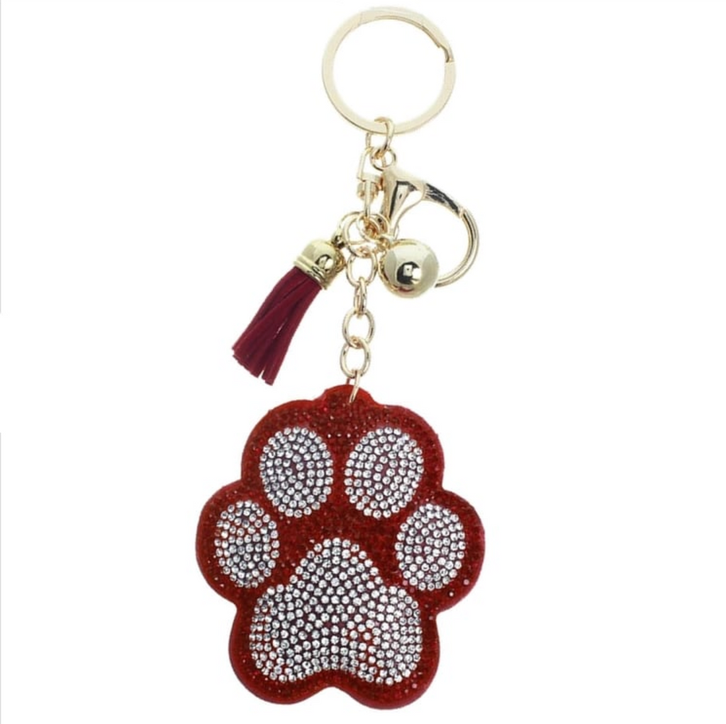 Red Paw Wildcat Rhinestone Puffy Tassel Keychain