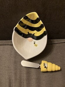 Ceramic Bee Gnome Dip Bowl & Spreader